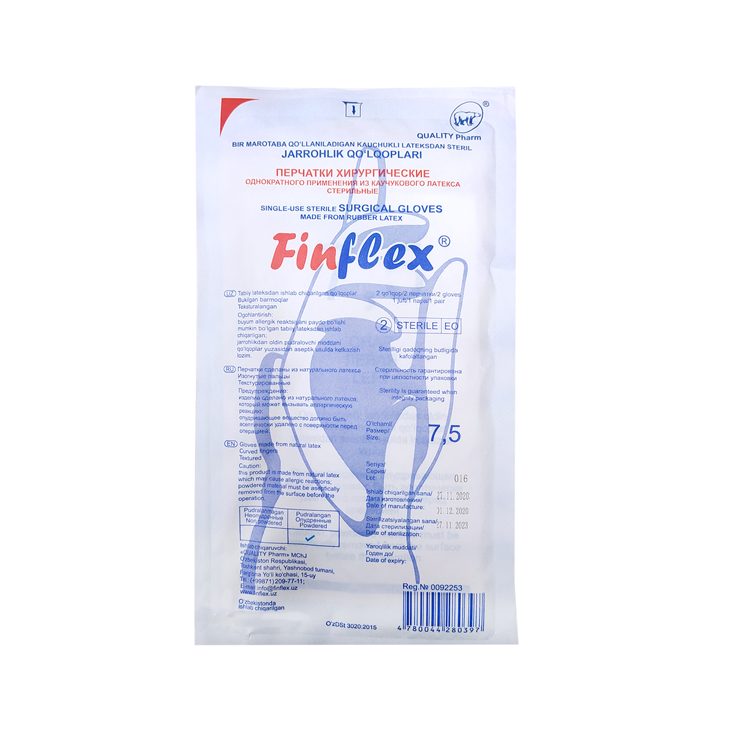 Перчатки стерильные хирург. опудренные размер 7,5 (Quality Pharm OOO)