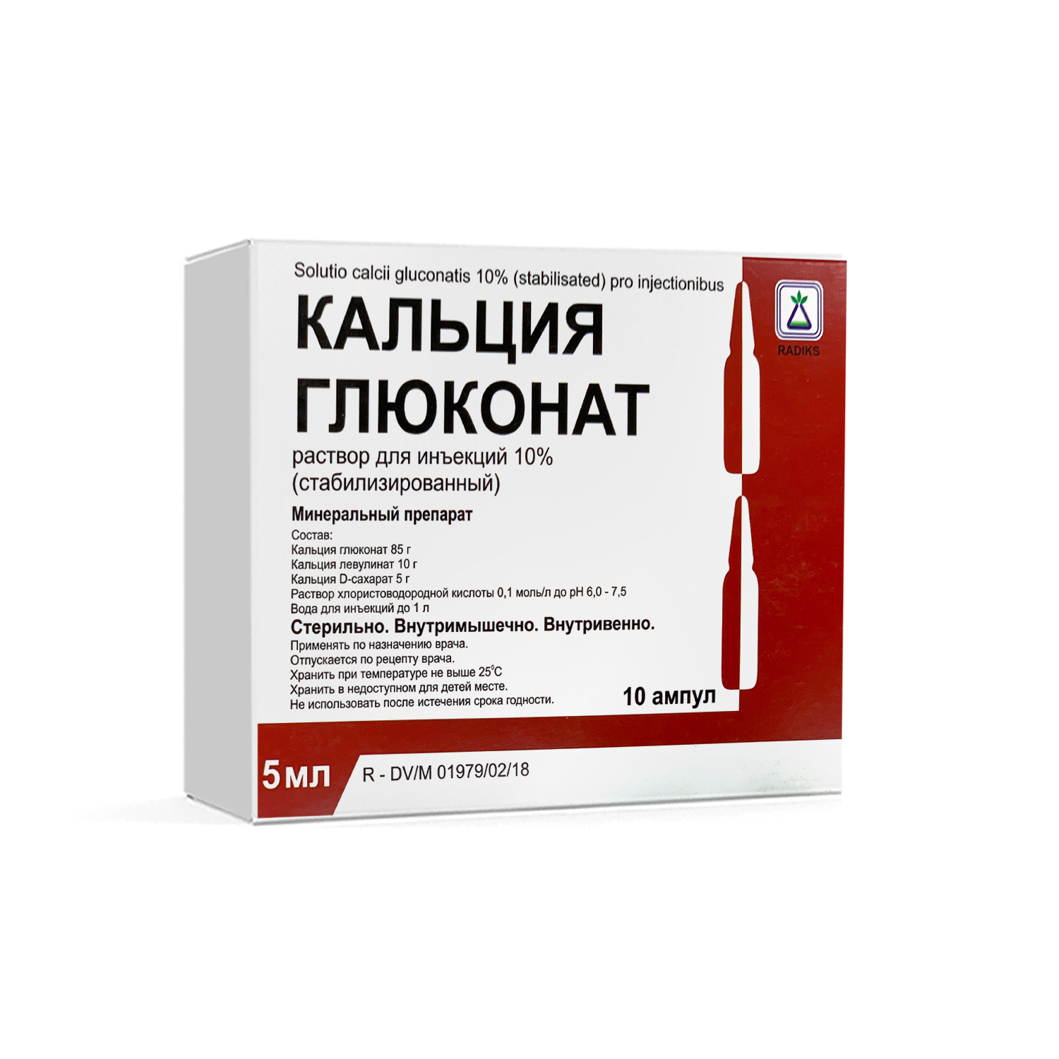 Kaltsiy glyukonat in'ektsiya eritmasi 10% 5ml №10 Radiks
