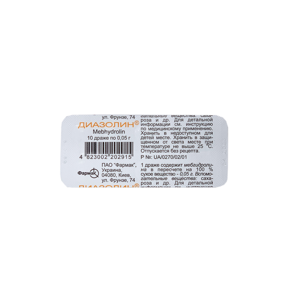 Diazolin draje 0,05g №10 Farmak haqida va yo'riqnoma