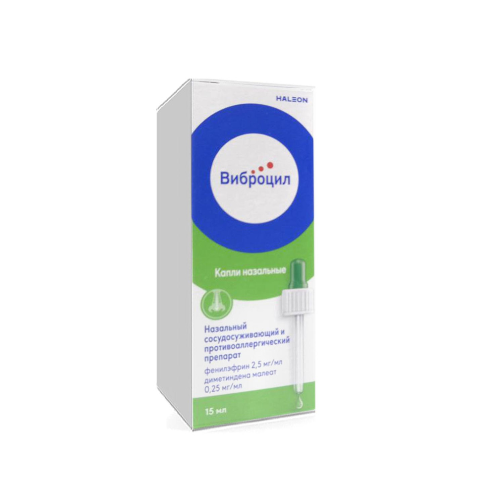 Виброцил - комбинированный препарат, содержащий фенилэфрин и диметинден. Фенилэфрин - симпатомиметическое средство, при местном применении оказывает умеренное сосудосуживающее действие (за счет стимуляции альфаl-адренорецепторов, расположенных в венозных сосудах слизистой оболочки носа), устраняет отёк слизистой оболочки носа и его придаточных пазух. Диметинден является противоаллергическим средством - антагонистом гистаминовых Н!рецепторов; не снижает активность мерцательного эпителия слизистой носа.