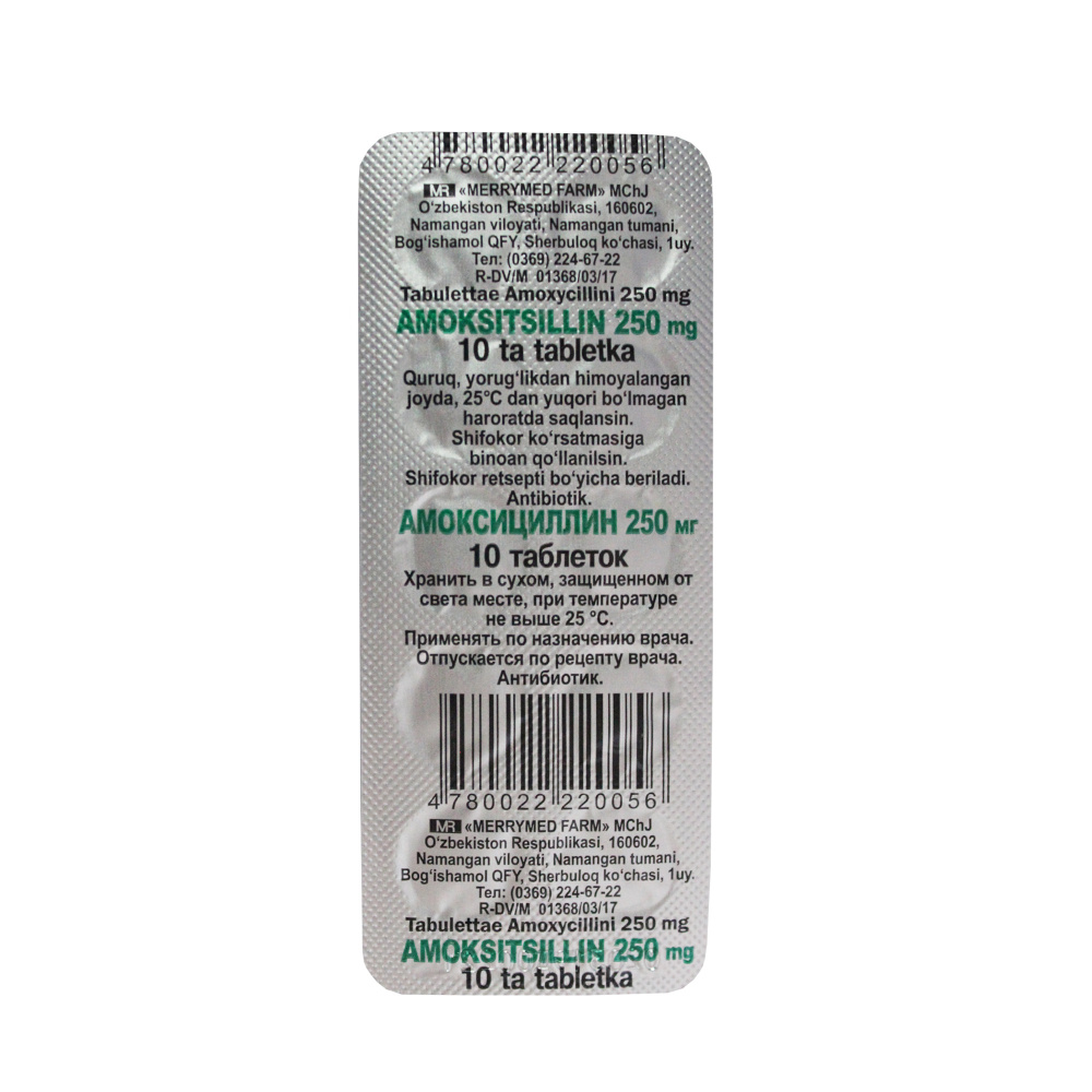 Амоксициллин 250 мг №10 MR haqida va yo'riqnoma