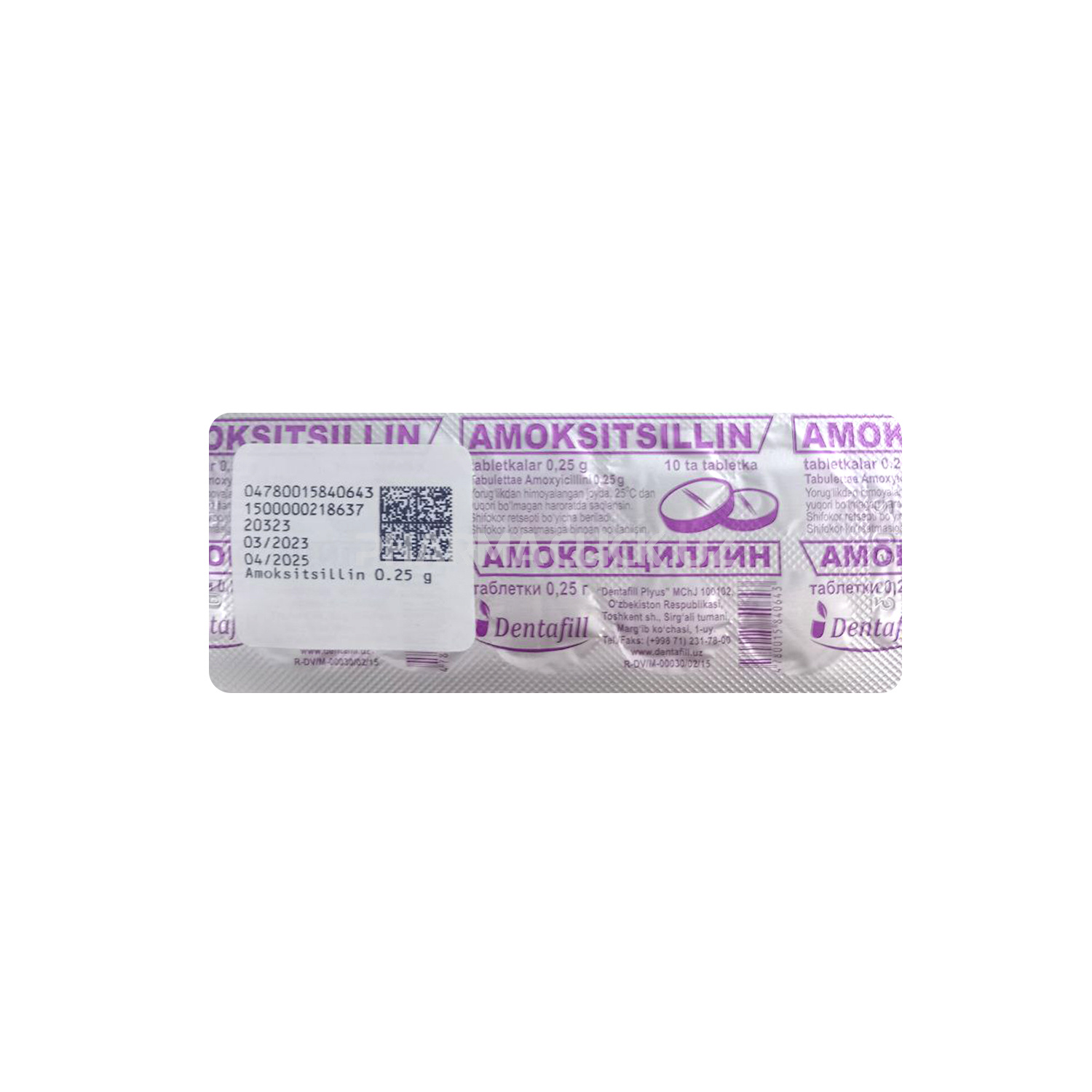 Амоксициллин таб 0,25 №10 Dentafill Plus haqida va yo'riqnoma