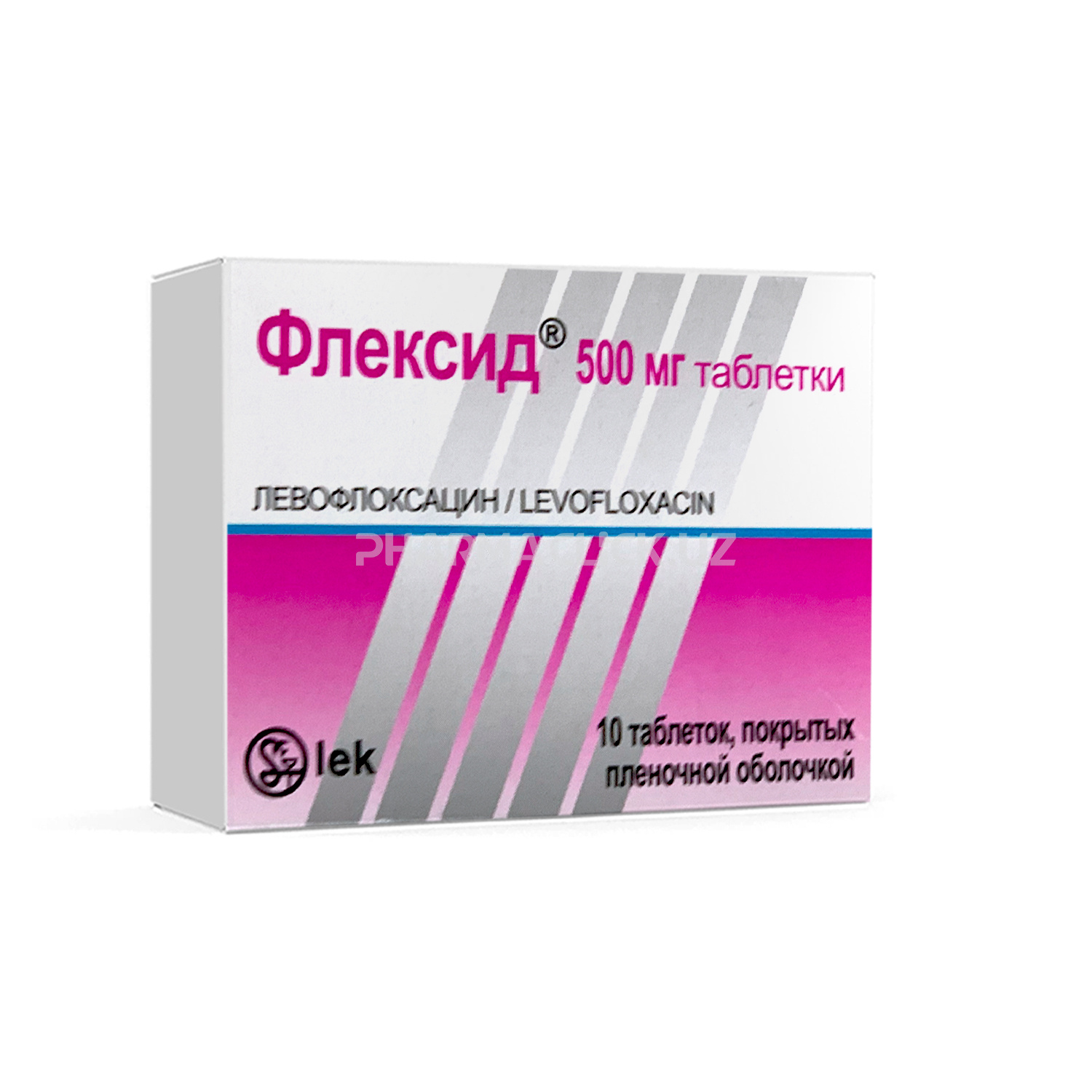 Fleksid® 500 mg har bir tabletka 500 mg gemigidrat ko‘rinishida levofloksatsin saqlaydi.