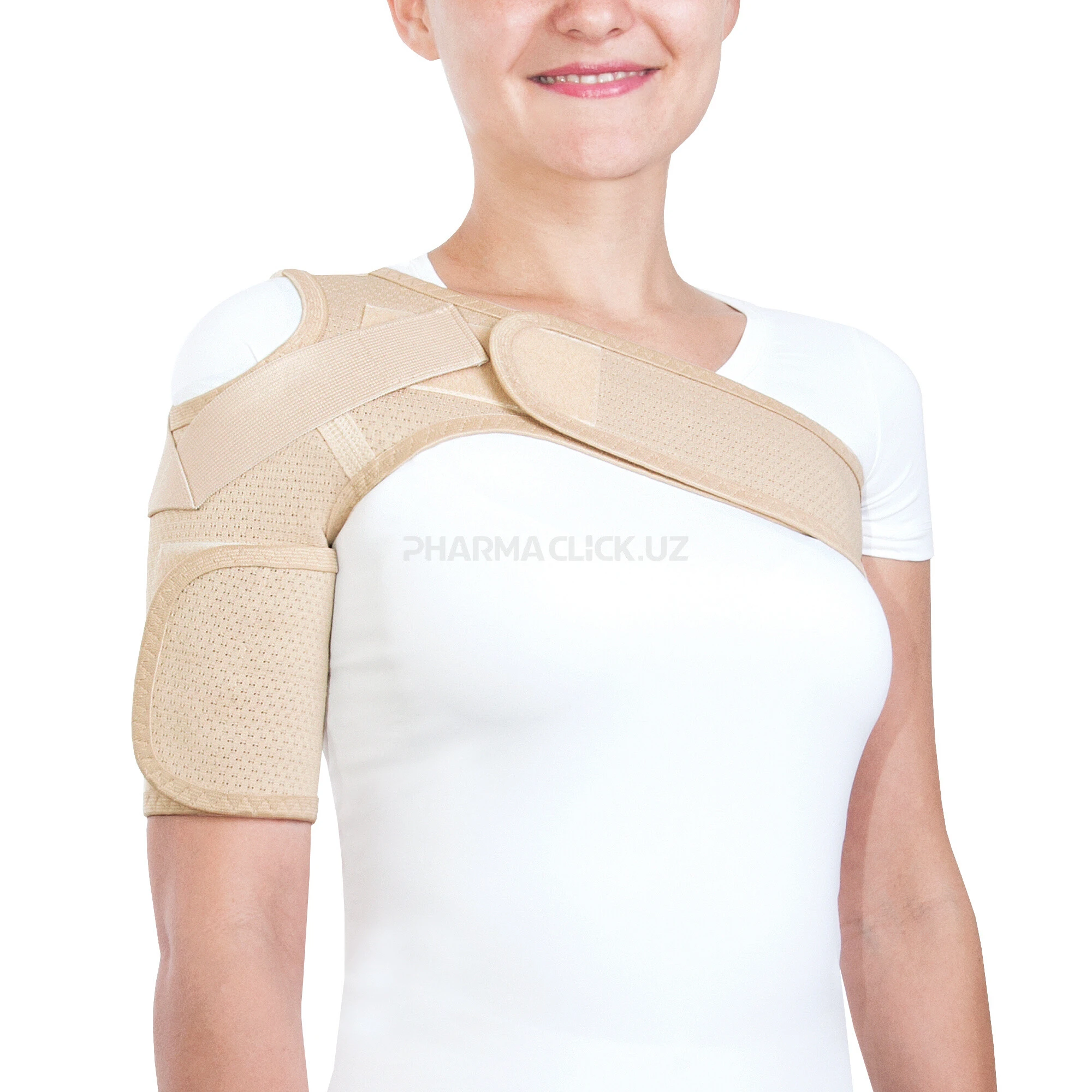 Yelkaga bandaj taqing, yelka bo‘g‘imini teshikka joylashtiring va ko‘krak qafasiga Velcro tasmasi bilan mahkamlang