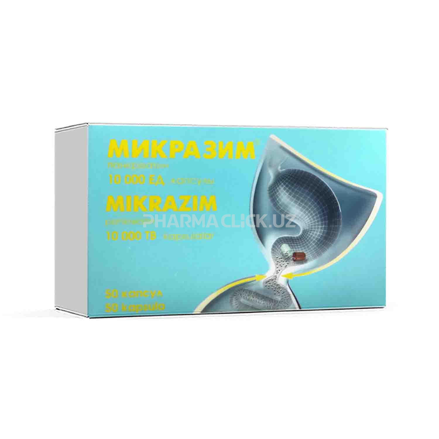 Mikrazim® - pankreatin pelletlari kapsulalarda. Preparatning tarkibiga ovqatning oqsil, yog‘ va uglevodlarning hazm bo‘lishini ta'minlovchi hayvonlarning me'da osti bezining tabiiy fermentlari - proteaza, lipaza va amilaza kiradi.