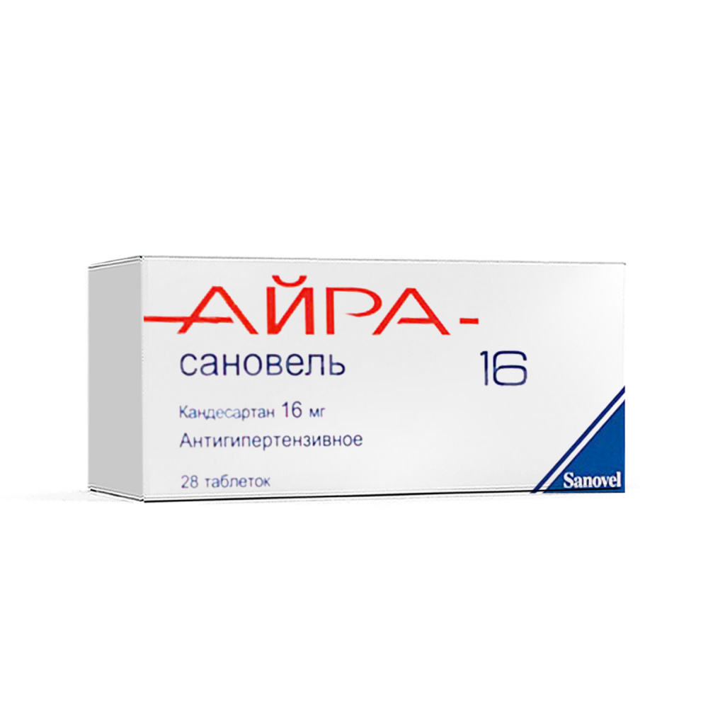 При приеме внутрь препарата АЙРА - сановельв процессе абсорбции в желудочно-кишечном тракте кандесартана цилексетил подвергается гидролизу и переходит в активную форму – кандесартан. Кандесартан, блокируя процесс связывания ангиотензина II с АТ1 рецептором в гладких мышцах сосудов, надпочечниках, препятствует вазоконстрикторной и альдостерон-секреторной функции ангиотензина II. АЙРА – сановельоказывает длительное, дозозависимое воздействие на артериальное кровяное давление, уменьшая его. Антигипертензивное действие препарата АЙРА – сановельсвязано с уменьшением системного периферического сопротивления без рефлекторного увеличения сердечного ритма. Применение 1 раз в день, в интервалах между дозами способствует образованию небольшой разницы между максимальными и очаговыми эффектами и стойкому понижению артериального давления. При недостаточном понижении артериального давления возможно совместное применение тиазидовых диуретиков (кандесартана гидрохлортиазида) и кальциевых антагонистов (амлодипина). АЙРА – сановель, наряду с понижением почечной сосудистой сопротивляемости и фильтрационной фракции, ускоряет почечное кровоснабжение и клубочковую фильтрацию.
