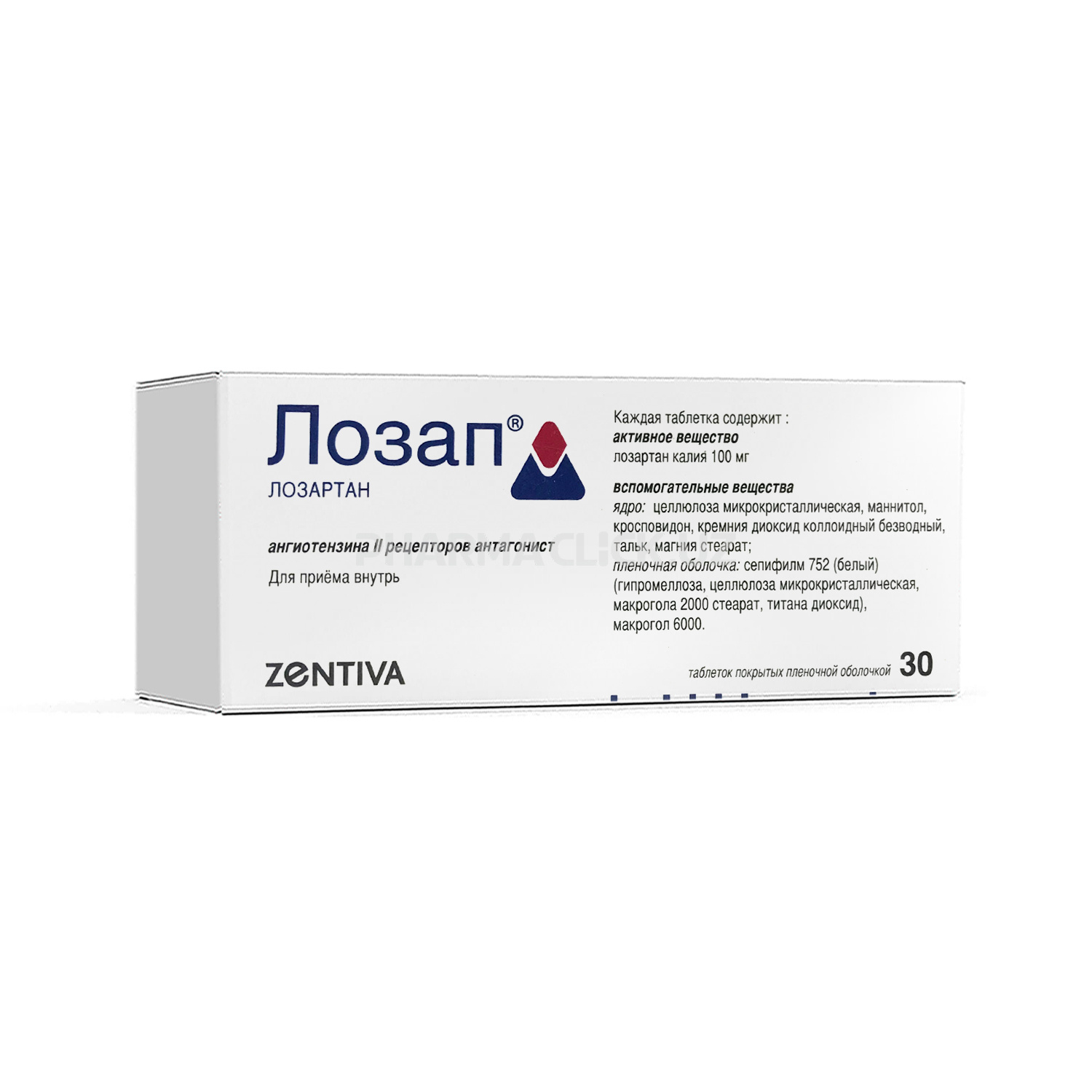 Необходимо проводить коррекцию дегидратации до назначения ЛОЗАП® или начинать лечение с применения препарата в более низкой дозе. Препараты, оказывающие воздействие на ренин–ангиотензиновую систему, могут увеличивать концентрацию мочевины в крови и сывороточного креатинина у пациентов с билатеральным почечным стенозом или стенозом артерии единственной почки. У больных с циррозом печени концентрация лозартана в плазме крови значительно увеличивается, в связи с чем, при наличии заболевания печени в анамнезе следует назначать в более низких дозах. В период лечения следует регулярно контролировать концентрацию калия в крови, особенно у пациентов пожилого возраста, при нарушениях функции почек. Беременность и период лактации Данных по применению лозартана при беременности нет. Однако, известно, что, препараты, воздействующие непосредственно на ренин-ангиотензин-альдостероновую систему, при применении во II и III триместрах беременности, могут вызывать дефекты развития или даже смерть развивающегося плода. Поэтому при возникновении беременности прием препарата ЛОЗАП® следует немедленно прекратить. При назначении в период лактации следует принять решение о прекращении грудного вскармливания или о прекращении лечения препаратом ЛОЗАП®. Влияние на способность к концентрации внимания Лозартан не влияет на способность управлять автомобилем или работать с механизмами. Препарат не следует применять после истечения срока годности и следует хранить в недоступном для детей месте.