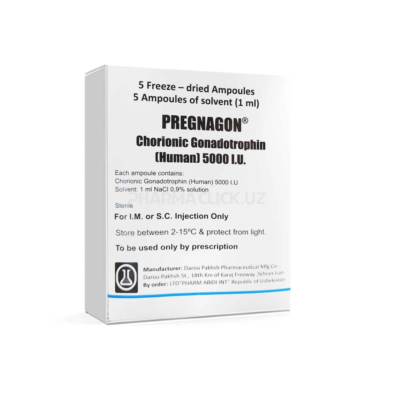 Прегнагон 5000МЕ №5(ампулы) + р-ль 1мл №5 haqida va yo'riqnoma