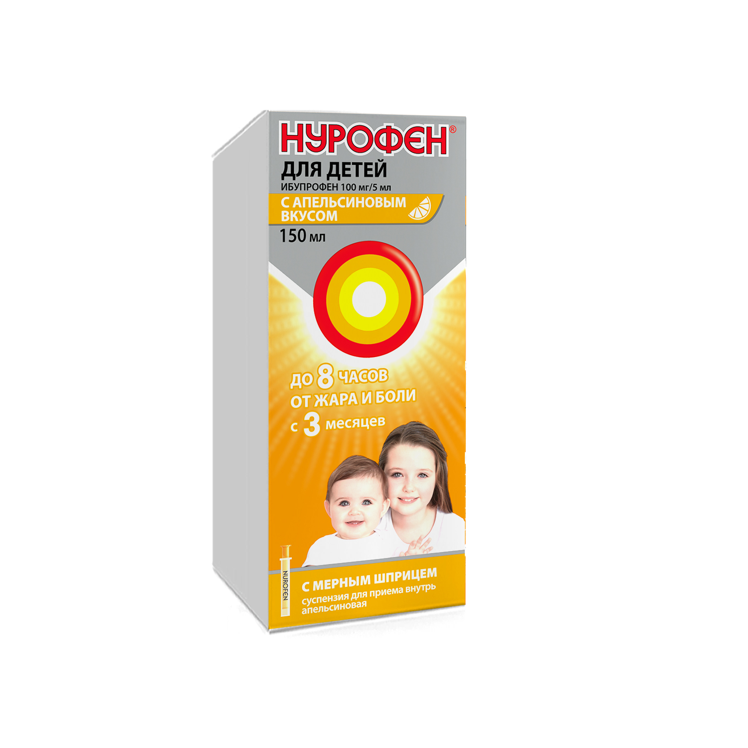 Nurofen ichga qabul qilish uchun suspenziya apelsin ta'mli 100mg/5ml 150ml