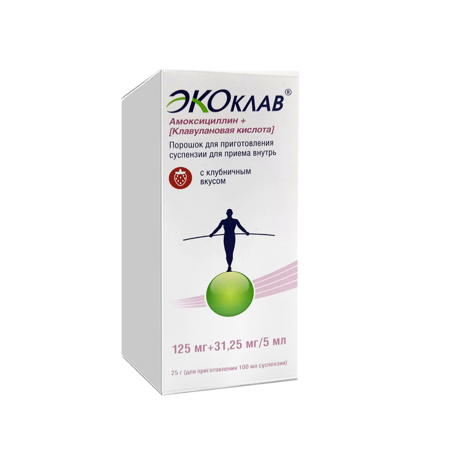 Ekoklav ichga iste'mol qilinuvchi suspenziya tayyorlash uchun kukun 125mg+31,25mg/5ml 25g