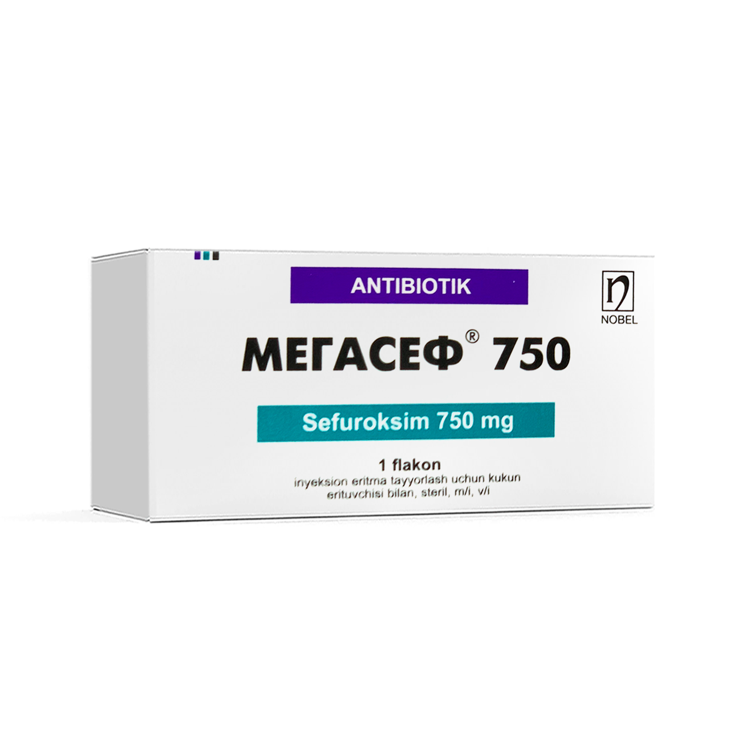 Megasef 750 in'ektsion eritma tayyorlash uchun kukun 6 ml