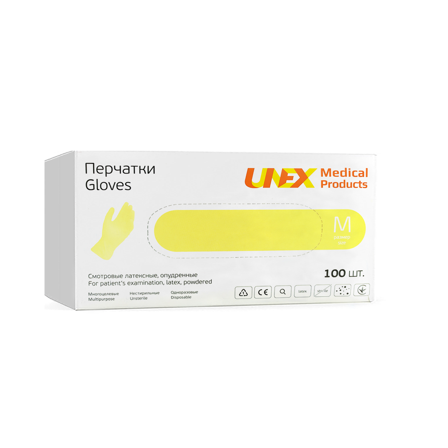 Перчатки опудренные латексные нестерильные*разм.M*100шт., (Тайланд) бесцветные,