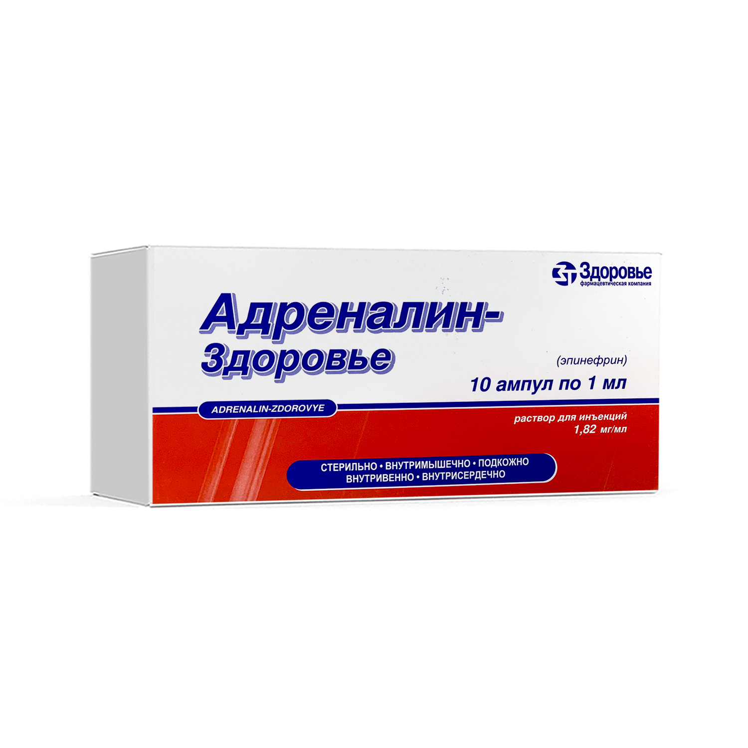 Adrenalin eritmasi, in'ektsiya uchun 1,82 mg/ml 1 ml №10
