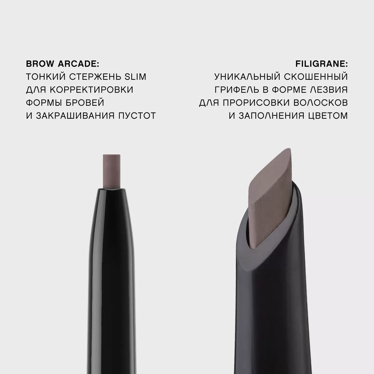 BROW FILIGRANE qalamining to'rt hil rangdan iborat va har bir soch tolasini aniq chizish imkonini beradi,, zich, qalin va tabiiy ko'rinishdagi qoshlarni yaratadi.