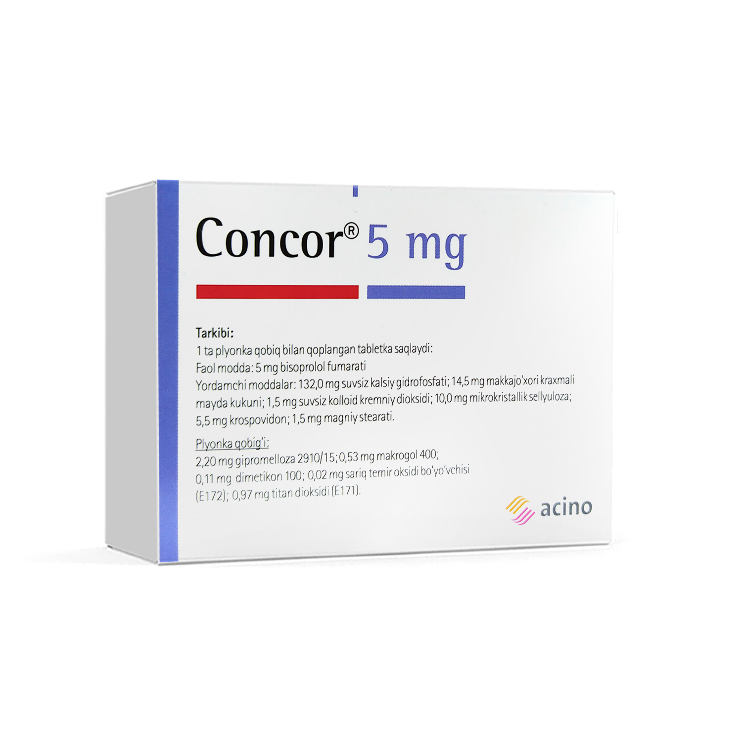 Konkor plyonka qobiq bilan qoplangan 5 mg №50