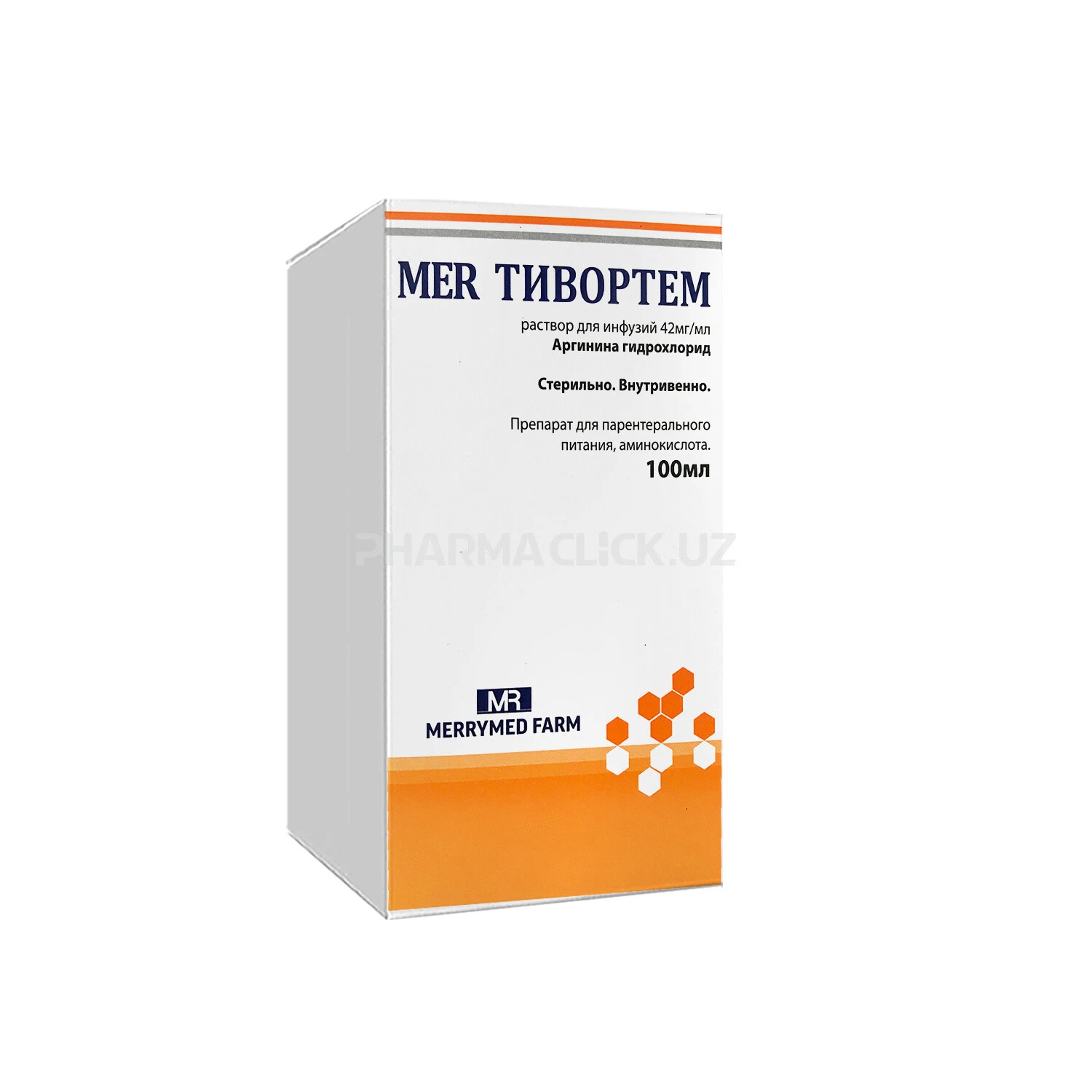 Тивортин содержит 4,2 г аргинина гидрохлорида в 100 мл физиологического раствора.