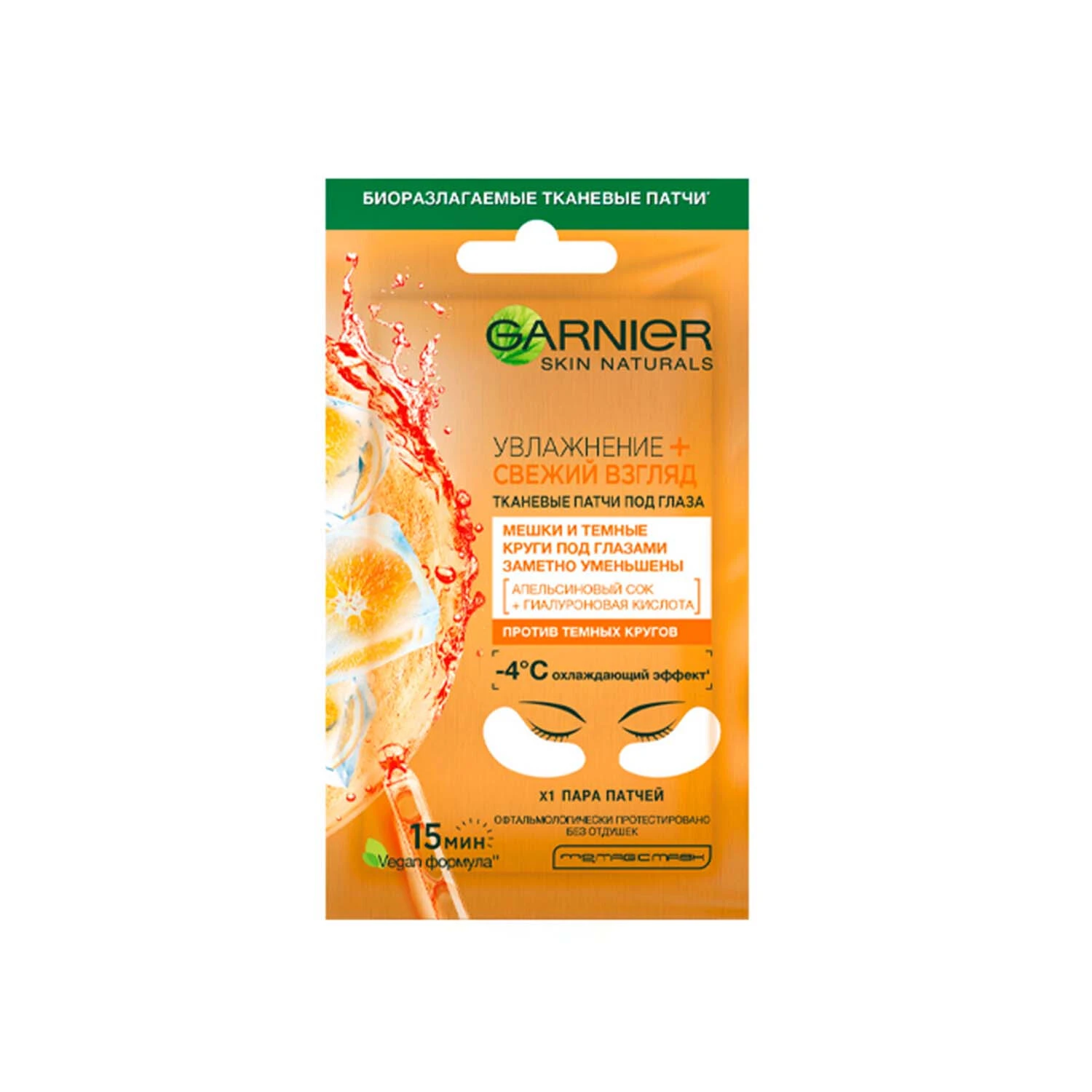 da apelsin sharbati mavjud bo‘lib, u ko‘z atrofidagi shishlar va ko‘karishlarni bartaraf etadi, shuningdek, mayda ajinlar paydo bo‘lishini kamaytiradi. Super sovituvchi ta’sir tufayli terining harorati 4°C ga pasayadi, bu uni yanada tetiklashtiradi va charchoq izlarini kamaytiradi. Intensiv sovitish effekti uchun patchlarni sovutgichda saqlash tavsiya etiladi.