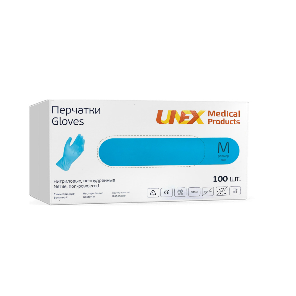 Перчатки неопудренные нитриловые*разм.M*100шт., (Вьетнам) синие
