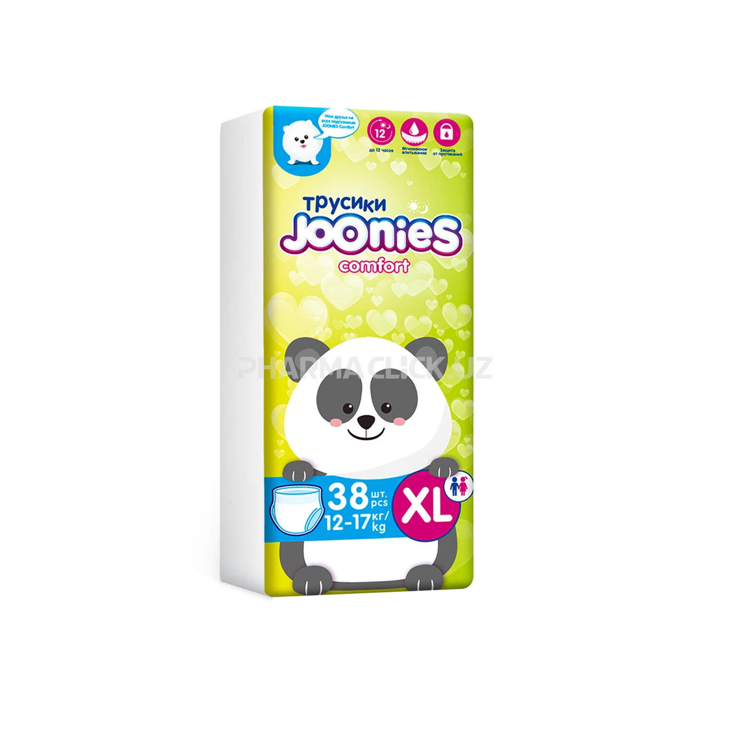 Подгузники-трусики Comfort – это новая линейка трусиков для активных малышей от торговой марки JOONIES.Стильный ДИЗАЙН подгузников Comfort порадует не только маму, но и малыша.Милые мордочки зверят изображены не только на пачке, но и на самих трусиках.Рисунок на попе меняется вместе с размеромТрусики комфорт тонкие и приятные к телу, совсем как обычные хлопковые трусишки.Внутренняя рифленая поверхность защищает малыша от раздражений.Впитывающий слой состоит из двухслойного суперабсорбента, который надежно удерживает влагу внутри подгузника.Широкая резиночка и оборочки вокруг ножек плотно прилегают к телу малыша и защищают от протеканий.Полоски-индикаторы сменят цвет и подскажут, когда пора сменить подгузник.Липкая лента поможет закрепить края использованных трусиков, для удобства утилизации