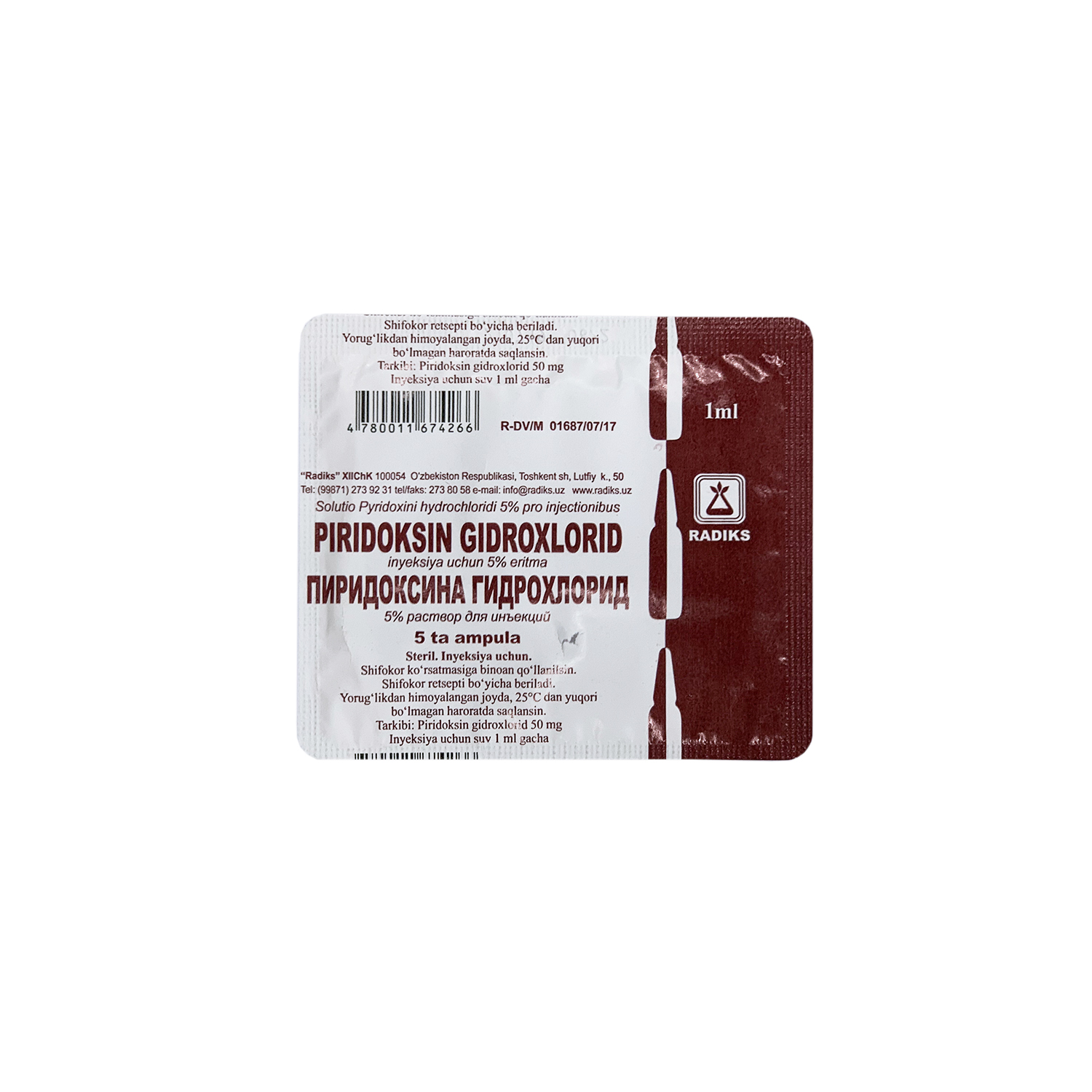 Piridoksina gidroxlorid (Vit В6) in'ektsiya uchun eritma 5% 1ml №5 (Radiks)