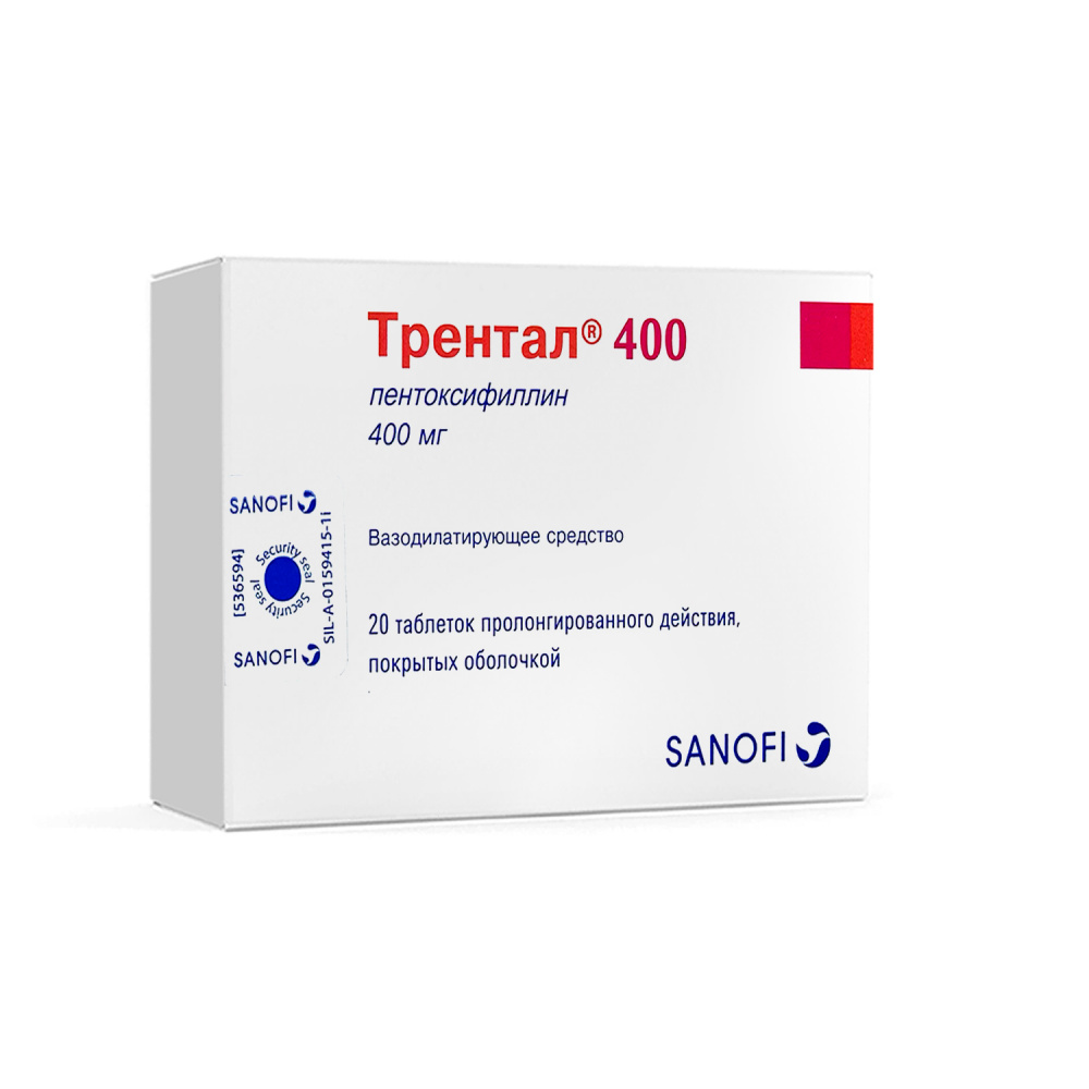 Faol modda sifatida Trental 400 tarkibida ksantin hosilasi bo‘lmish – pentoksifillinni saqlaydi. Uning ta'sir mexanizmi fosfodiesterazani ingibirlash hamda silliq mushak tomirlarining hujayralarida va qonning shaklli elementlarida sAMF ni to‘planishi bilan bog‘liqdir.