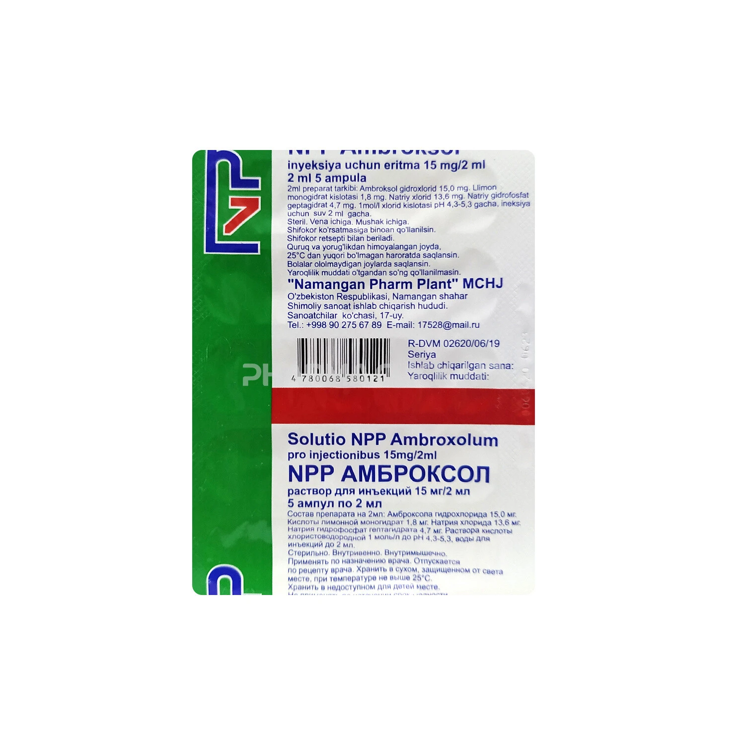Амброксол амп. 15мг/2мл №5 (NPP) haqida va yo'riqnoma