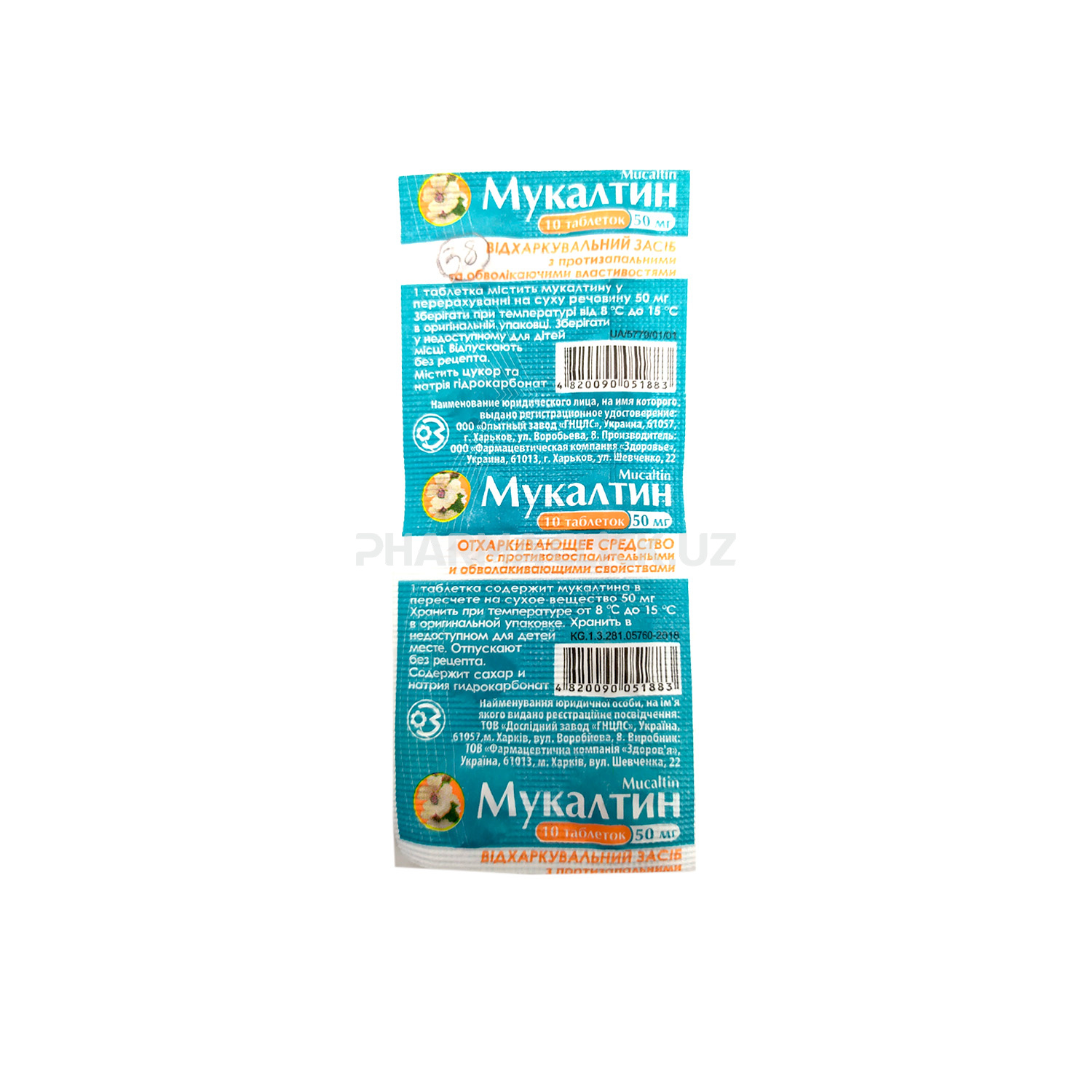 Mukaltin tab. 50mg №10 (Opitniy Zavod) haqida va yo'riqnoma