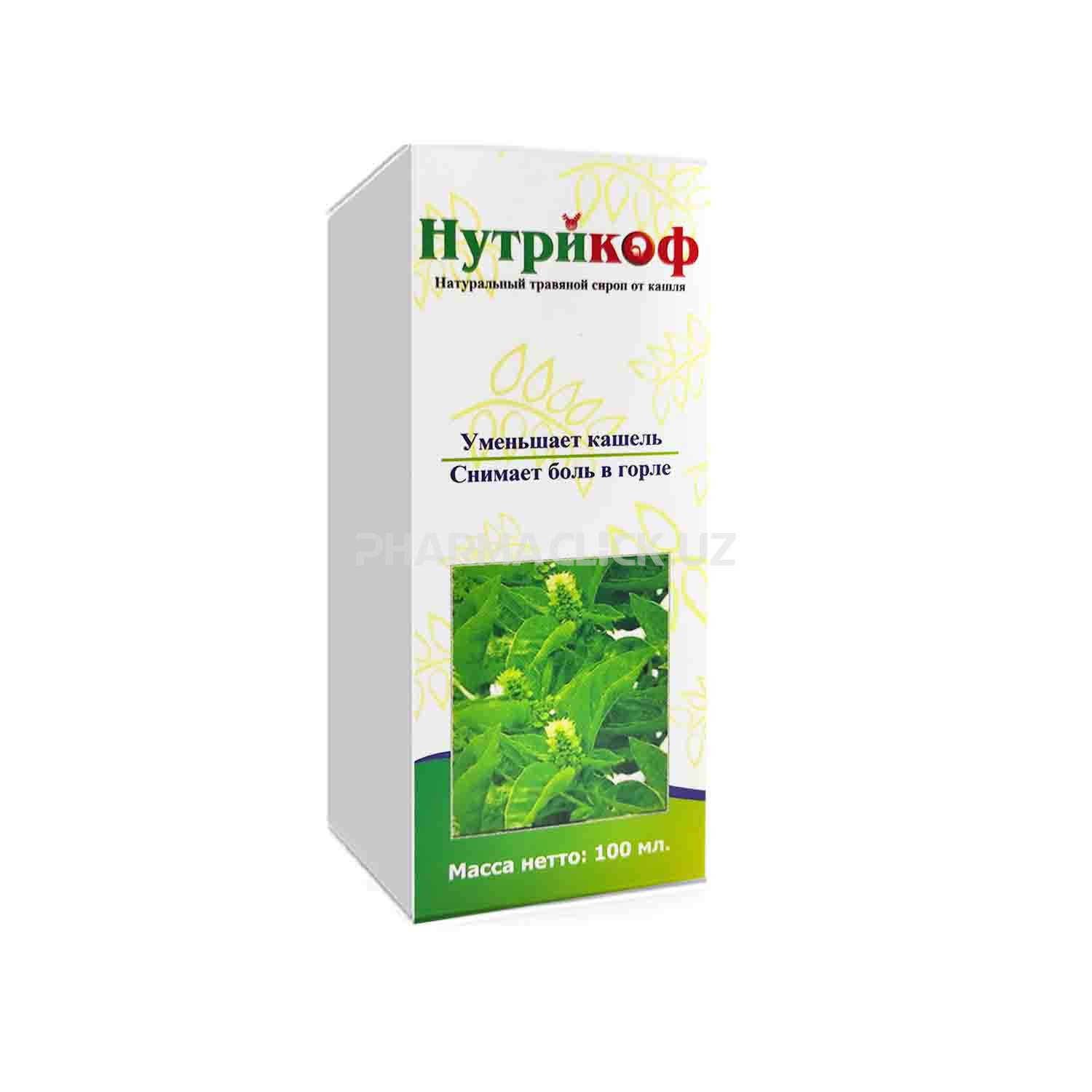 Сироп «Нутрикоф» содержит растительные экстракты в ароматной сиропной основе. Является замечательным средством от кашля для людей всех возрастных групп. Препарат полностью создан из растительного сырья, с добавлением меда и мяты.
