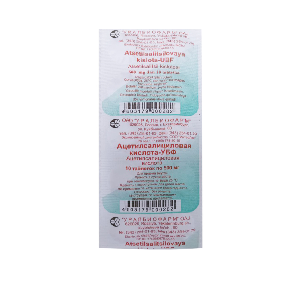 Ацетилсалициловая к-та-УБФ таб. 500мг №10 haqida va yo'riqnoma