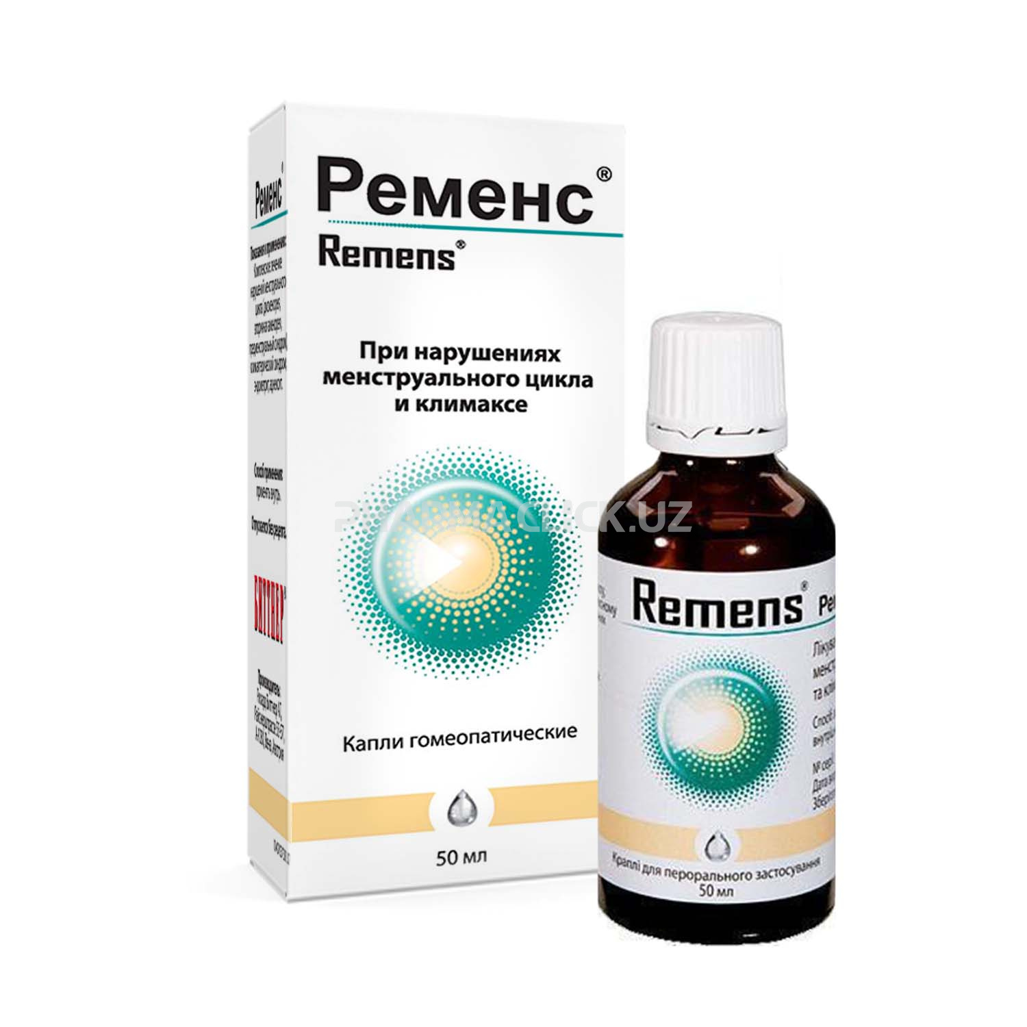 Комплексный гомеопатический препарат. Регулирует баланс системы гипоталамус-гипофиз-яичники, нормализует менструальный цикл, регулирует интенсивность кровотечений, уменьшает проявления альгодисменореи, ослабляет проявления синдрома предменструального напряжения (эмоциональную лабильность, раздражительность, агрессивность, депрессию, плаксивость), уменьшает отечный синдром. При климактерическом синдроме Ременс уменьшает психоэмоциональные проявления (эмоциональную лабильность, обидчивость, агрессивность, депрессию, плаксивость, нарушения сна), вегетативные (приливы, гипергидроз, приступы сердцебиения, кардиалгии, колебания АД) и обменные нарушения (нормализует жировой обмен, препятствует нарастанию массы тела, уменьшает риск развития сердечно-сосудистых заболеваний). Ременс оказывает противовоспалительное действие на ткани яичников и эндометрий, улучшает микроциркуляцию органов малого таза.