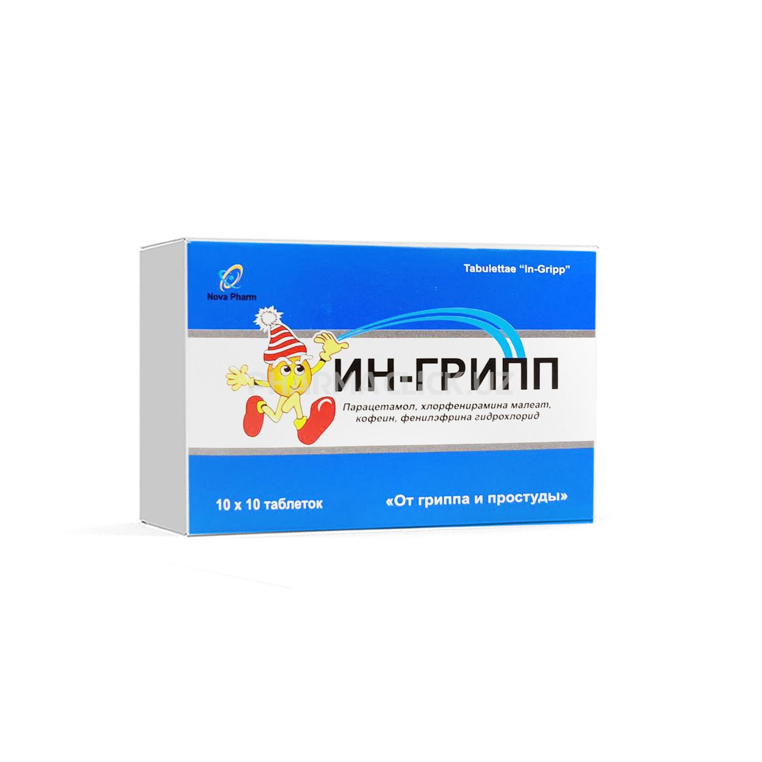 Barbituratlarni, tirishishga qarshi vositalarni va alkogolni preparat bilan bir vaqtda qo‘llanilishi gepatotoksik ta'sir xavfini oshiradi. In-gripp qabul qilinganda Zidovuddinning faolligi pasayishi mumkin. Kofein In-grippning og‘riq qoldiruvchi ta'sirini kuchaytiradi. Preparatni alkogol va boshqa MNT faoliyatini susaytiruvchi vositalar (uxlatuvchi, sedativ preparatlar trankvilizatorlar va narkotik analgetiklar) bilan bir vaqtda qo‘llanganda MNT ga bo‘lgan susaytiruvchi ta'siri kuchayishi mumkin. Antixolinergik preparatlar va tritsiklik antidepressantlar bilan bir vaqtda qabul qilinganda ularning samaralari kuchayishi mumkin.