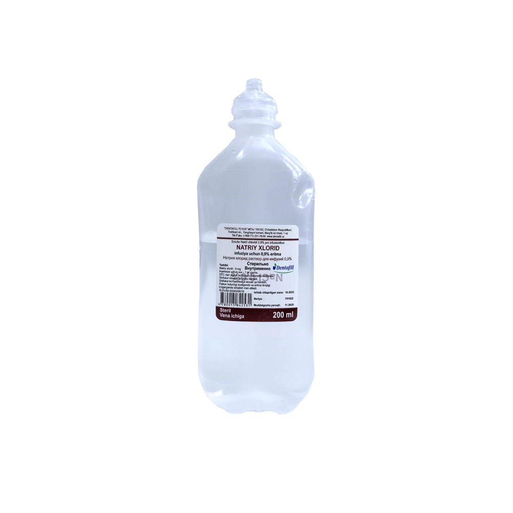 Natriy xlorid 0.9% infuziya uchun eritma 200ml DF haqida va yo'riqnoma