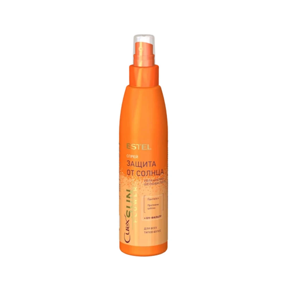 Estel Curex Sunflower "Namlash va ultrabinafsha nurlaridan himoya qilish" spreyi - bu yozda har kuni sochlarni parvarish qilish uchun yuvilmaydigan vositadir. Spreyning yengil teksturasi sochlar bo‘ylab bir tekisda tarqaladi, ularni og‘irlashtirmaydi. Suvga chidamli bo‘lgan bu formula hatto suvga tegganda ham sochlarni himoya qilishda davom etadi.