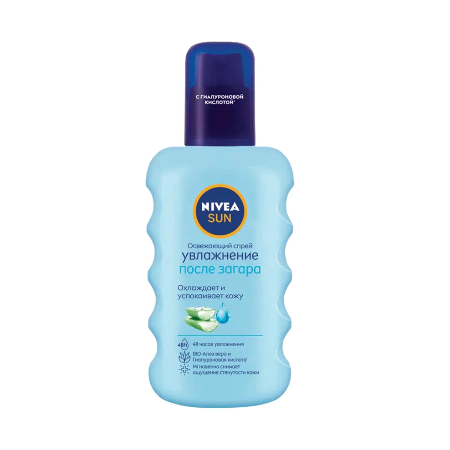 Освежающий спрей Nivea "Увлажнение после загара" с гиалуроном обладает охлаждающим и освежающим эффектом, обеспечивает увлажнение на 48 часов. Легкая увлажняющая формула с Bio- Алоэ Вера и Гиалуроном помогает восстановить гидробаланс кожи и препятствует шелушению.
