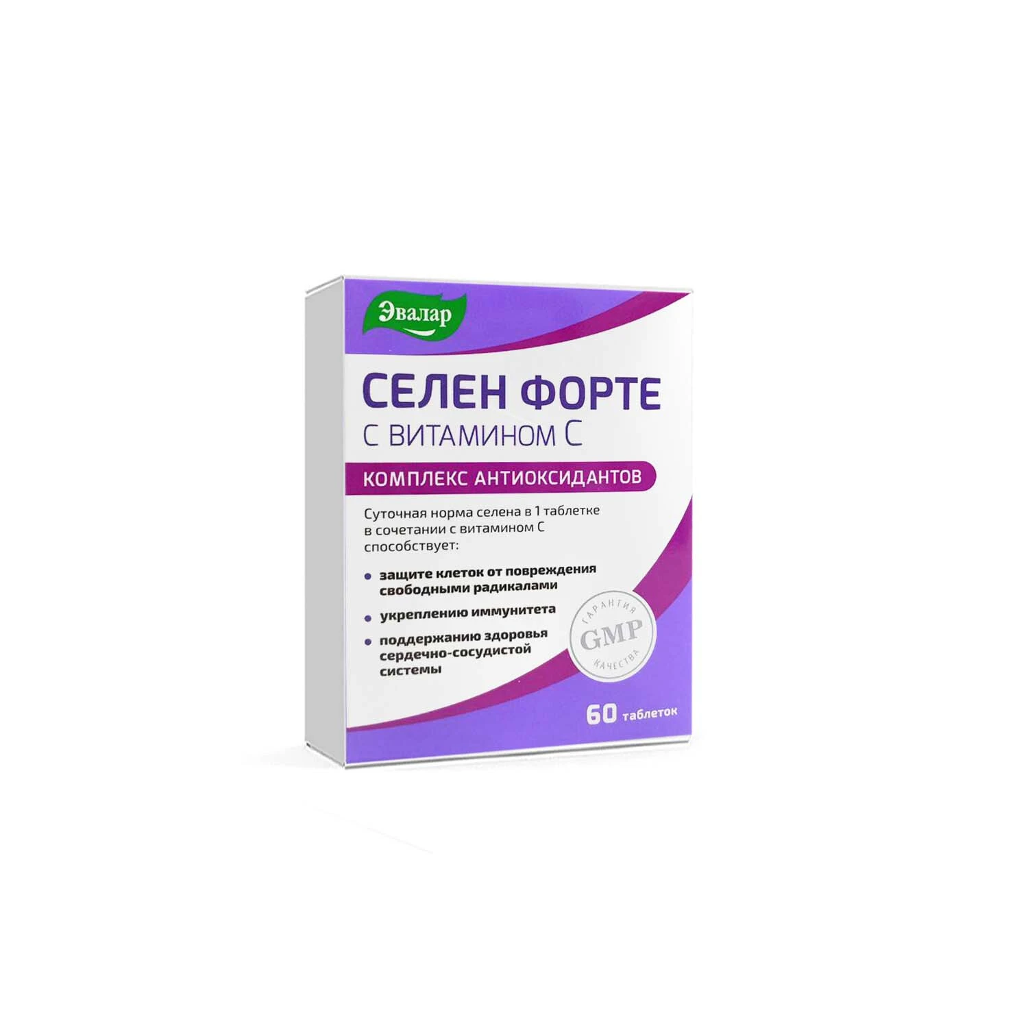 1 таблетка "Селен Форте с витамином С" от Эвалар содержит суточную норму селена (70 мкг), витамин С и способствует
