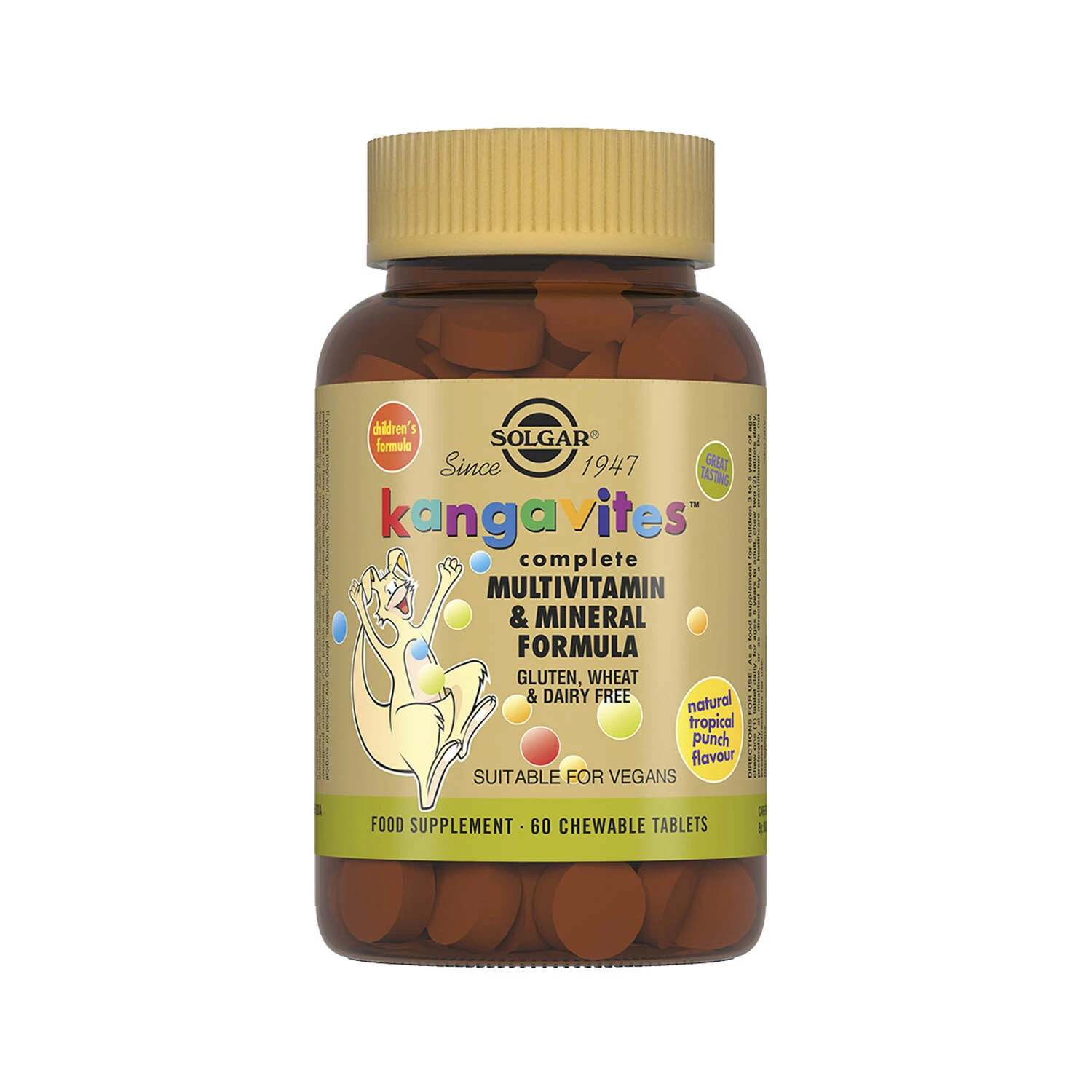 “Kangavites™. Multivitaminlar va minerallar kompleksi” chaynaladigan, fruktoza bilan shirin ta’m berilgan va tropik mevalar va sabzavotlarning tabiiy ekstraktlari bilan mos hid bilan ta’minlangan tabletkalar ko‘rinishida ishlab chiqariladi. Shuningdek, bu mahsulot tarkibida sitrusli bioflavanoidlar, brokkoli, qizil lavlagi, sabzi, o‘rik, olma, qulupnay va na’matak ekstraktlari mavjud va o‘sib kelayotgan organizmning Vitamin va minerallaga bo‘lgan kunlik ehtiyojini qondiradi.