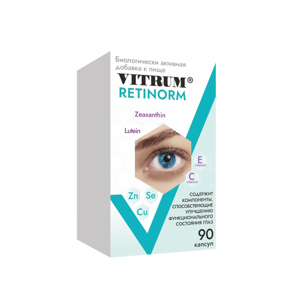 VITRUM RETINORM tarkibiga kiruvchi lyutein, zeaksantin, S, Ye vitaminlari va mikroelementlar ko‘z to‘qimalarida almashinuv jarayonlarini normallashishiga yordam beradi, ko‘zlarning yoshga bog‘liq o‘zgarishlarini rivojlanishi xavfini pasayishiga yordam berishi mumkin.