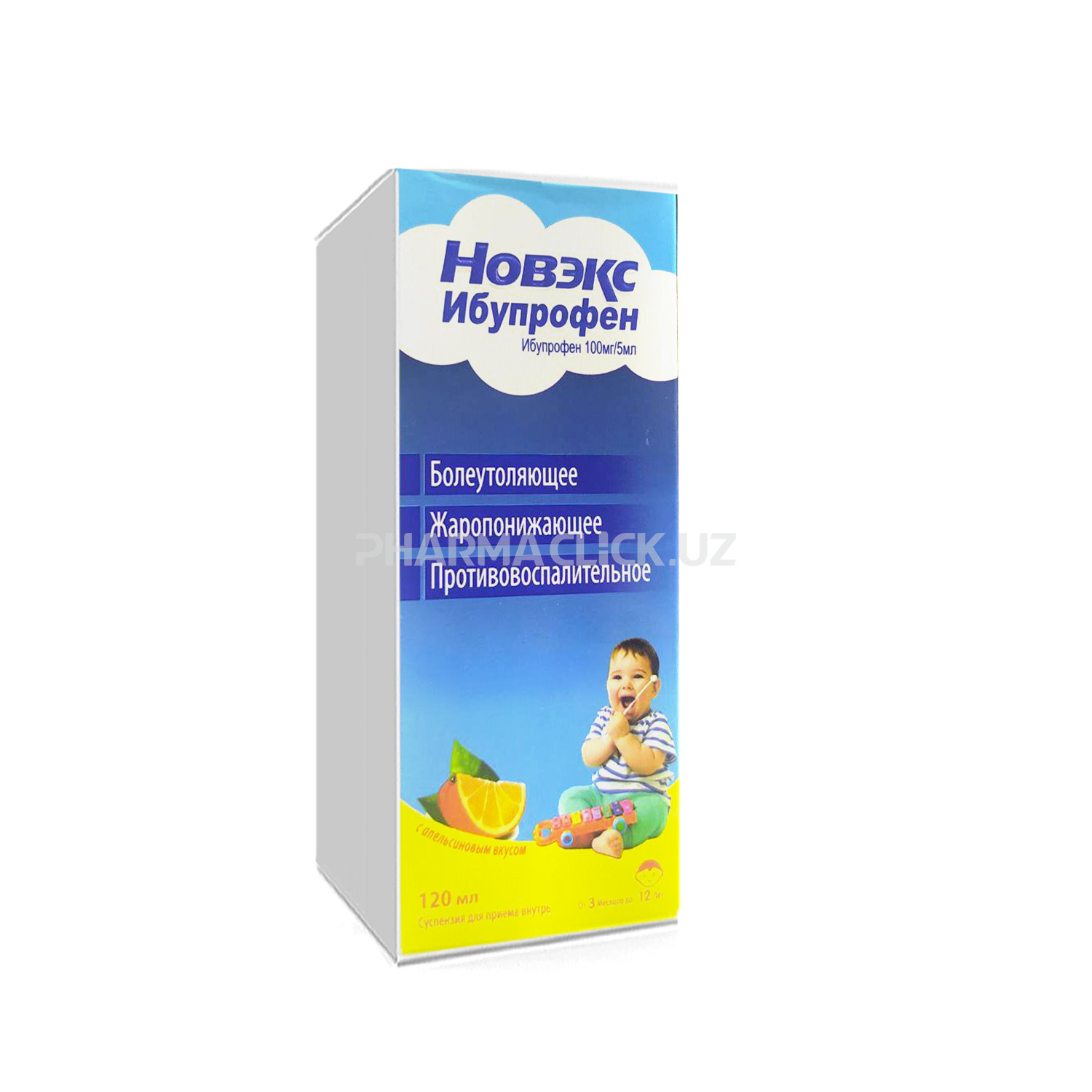 NOVEKS Ibuprofen keng xavfsizlik profili bilan birga kuchli isitma tushiruvchi, og‘riq qoldiruvchi va yallig‘lanishga qarshi hususiyatlarga ega.